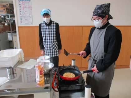 3年生は家庭科で調理実習でした。子どものおやつ作りということで、ホットケーキを作りました。よくホットケーキミックスを使って混ぜ混ぜして作りますが、今日はミックスを使わず、小麦粉、ベーキングパウダー、砂糖などの粉から作っていきます。小麦粉がだまにならないようにふるいにかけてなめらかにしています。(写真1枚目)ミックス粉以上においしいものができるのか!レッツトライ!ということで生地を焼いています。(写真2枚目)