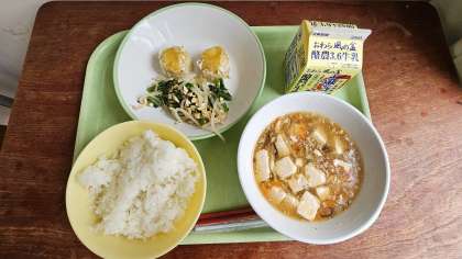 今日は麻婆豆腐とシューマイと中華料理が中心です!そこに有機米が今日もあります!美味しいお米とおかずで最高ですね!有機米は炊き加減が昨日よりも進化してさらにおいしくなっています。