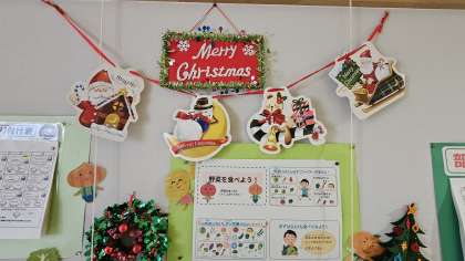 給食コーナーがクリスマスの飾りに変化しています!12月ですね!