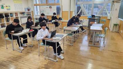 12月9日(月)1、3年生本日の活動 公開日 2024/12/09 更新日 2024/12/09 日々の活動から 3年生は確認テスト、1年生は社会科でアフリカ州とオセアニア州調べの発表に向けて頑張っていました。