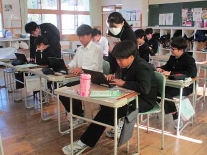 2年生は英語でタブレットで調べながら英文を作っていました。碧空級は社会科でペリー来航をしていました。
