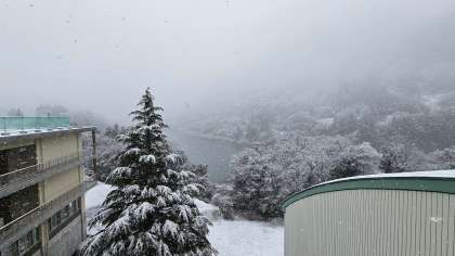 朝来たら雪がしんしんと降っています。積もりそうですね。