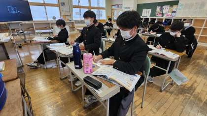 1年生は家庭科で日本の食文化、和食、2年生、碧空級は技術で運動の仕組み、3年生は国語で君待つと、万葉集、古今和歌集、新古今和歌集をしていました。