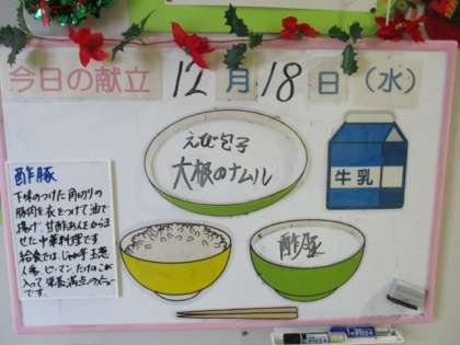 えび包子と酢豚の油をナムルが中和してくれて、とてもバランス良くおいしく食べれました。のこり今学期の給食は3回になります。