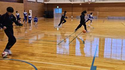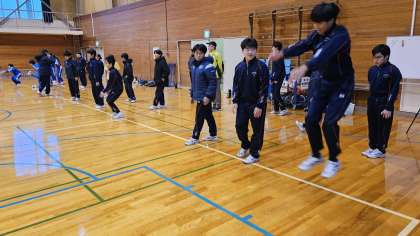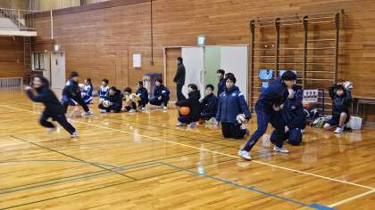 ボールと体を使った練習、ジャンプで体を動かす練習をしています。