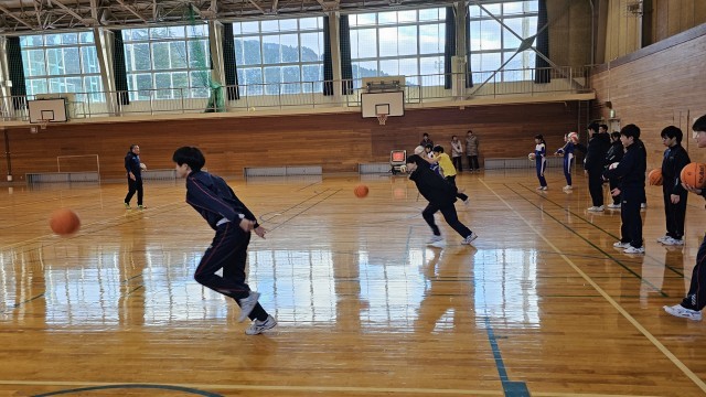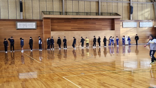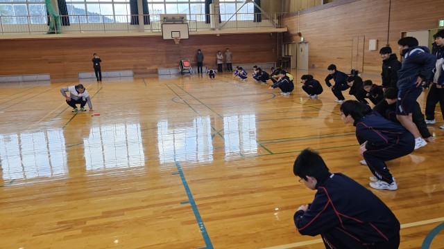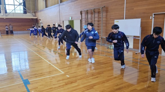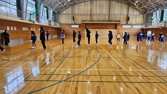 今日は2回目の冬季部活動教室が行われました。全ての部活動が参加し、12月の時よりもさらにレベルアップしたトレーニングを行いました。屈伸などのストレッチや全身を使った運動を楽しく行っていました。
