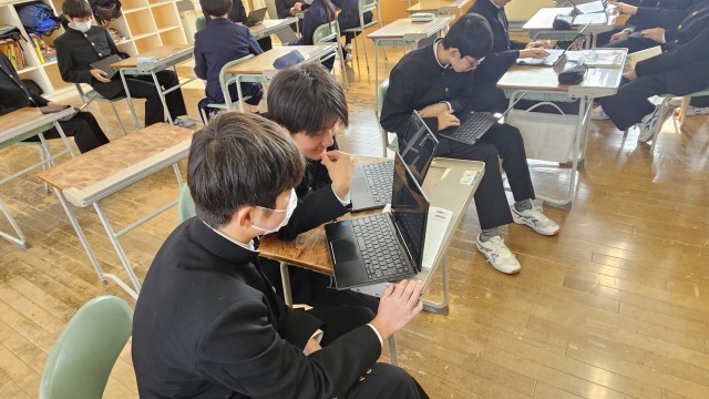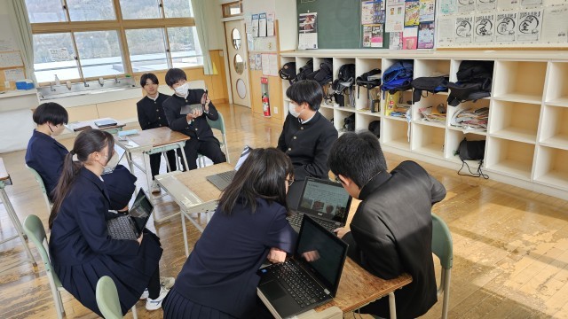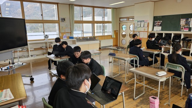 1、2年生で世界や日本の各地域について調べたことの発表会を行いました。それぞれの調べた成果を2,3人1組でお互いに発表しました。授業後の感想では「お互いの学年が何を学んでいるかわかった」、「先輩に親しく接してもらいながら、楽しく学べた」、「お互いの学年の資料作りの特徴がわかった、お互いのよさがわかった」などの意見がありました。興味をもって楽しく、お互いに学べた時間でしたね。