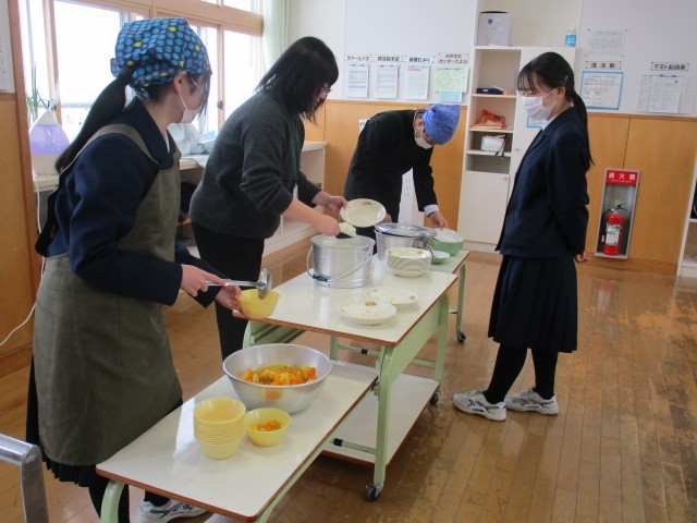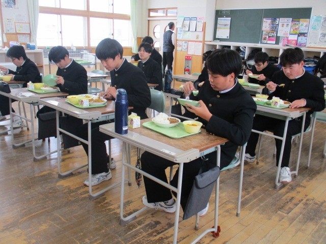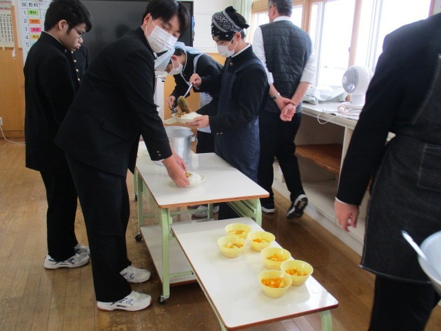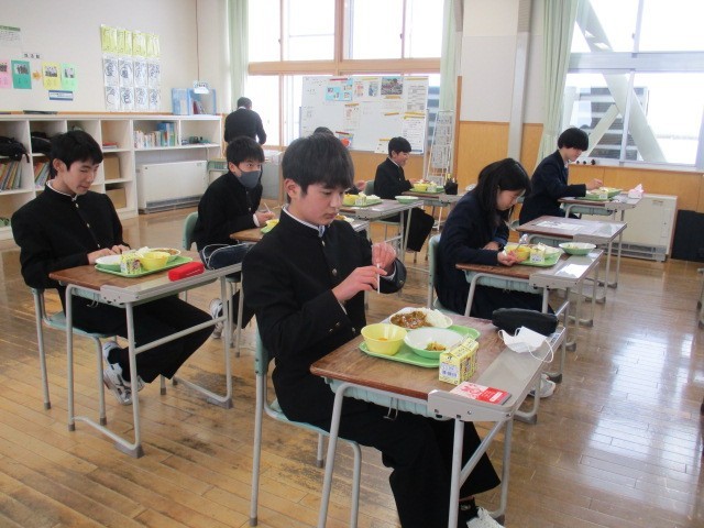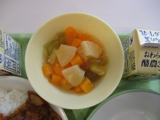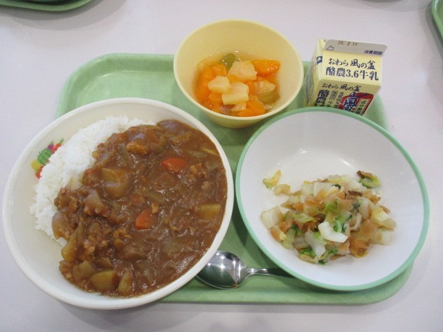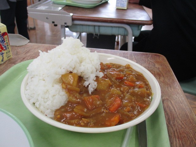 カレーやフルーツミックスゼリーをもりもりの大盛りにしている生徒もいました。大満足の給食でした!!