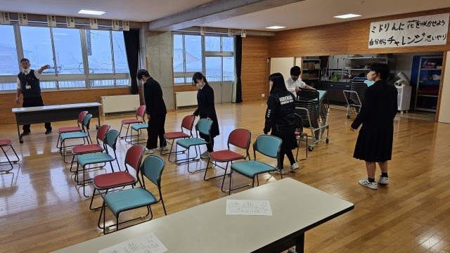 1年生は明日の新入生説明会にむけての会場設営を行いました。未来の後輩のために心を込めて準備しました。新入生の来校を楽しみにしているようです。