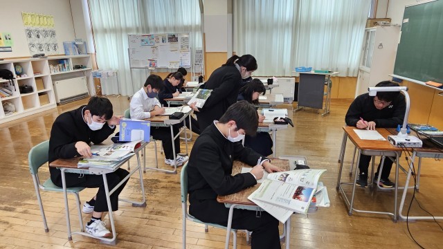1年生は英語でユニット10のまとめとして、問題にチャレンジしていました。解説を交えながら取り組んでいました。