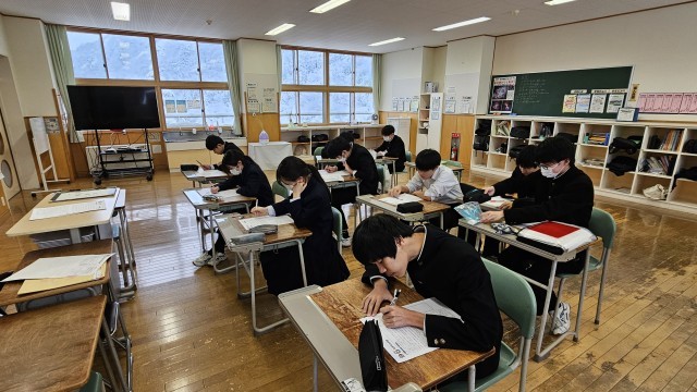 2年生は数学で平行四辺形でした。先生の話を聞きながら問題にチャレンジしていました。
