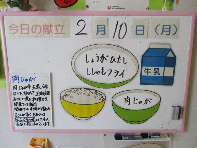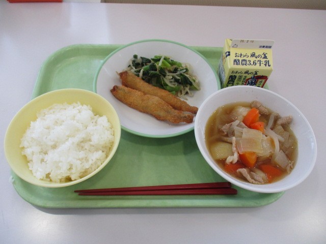 今日はシシャモフライ、肉じゃが、しょうがひたしでした。ししゃもは子持ちシシャモでさくさくで、肉じゃがはじゃがいもがホクホク、しょうがひたしは、野菜がシャキシャキでとても食感を楽しむことができた献立でした。