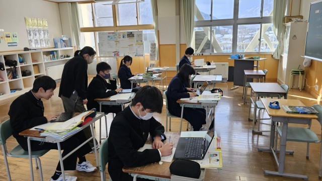 1年生は英語で憧れの人物の紹介文をつくろうで、その人物について調べ英文を作っていました。