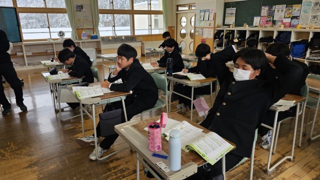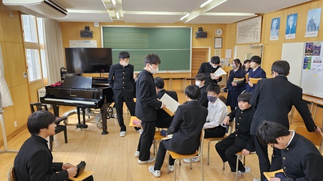 2年生は英語の前置詞のテキストを学習していました。お互いに聞きながら問題を解いていました。おうちでも復習しましょう。