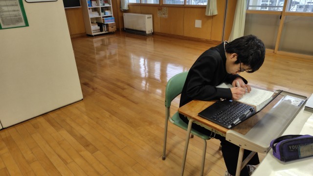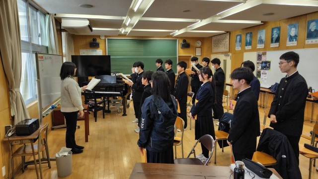 1、2年生で卒業式の歌練習をしていました。パート別に分かれたり、お互いのパートを聴きあったり、徐々に全体的なボリュームも上がってきました!