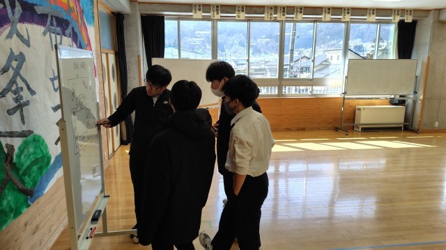 文化実践部は飾り付け作り、生活実践部は給食感謝の集いの準備、執行部は明日の卒業生を送る会のリハーサルをしていました。