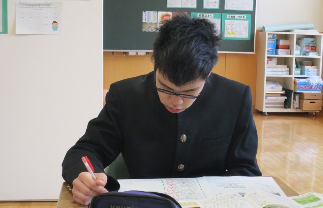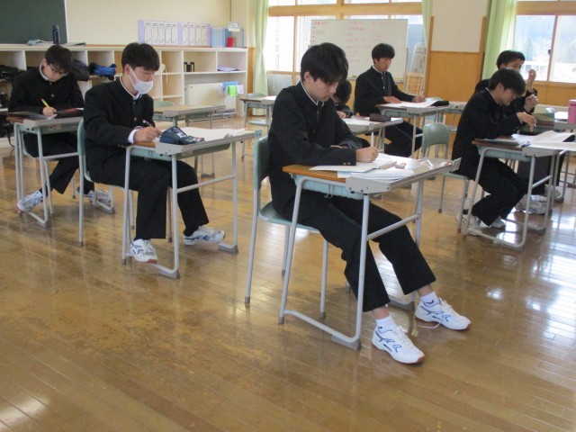 1年生は数学は教科書を確認、2年生は音楽で音楽を聞いてイメージをもつ、3年生は国語で文章を読んでいました、碧空級は社会で地理の復習でした。