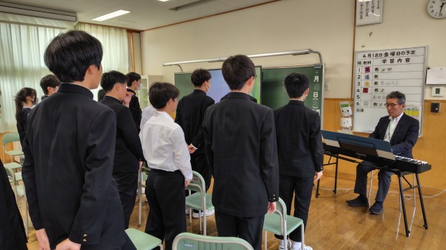 学校の歴史を校長先生からお話がありました。式後は校歌を大きな声で歌いました。
