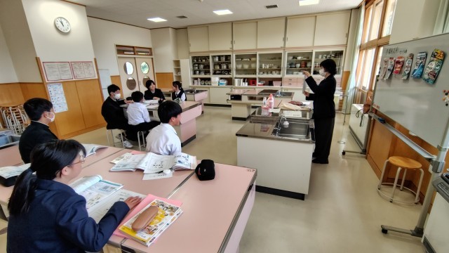2年生は家庭で洗剤の種類について学んでいました。石油系合成洗剤など様々な種類があることを知りました。