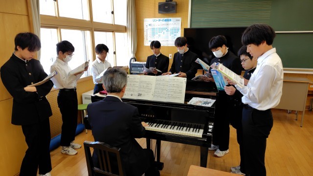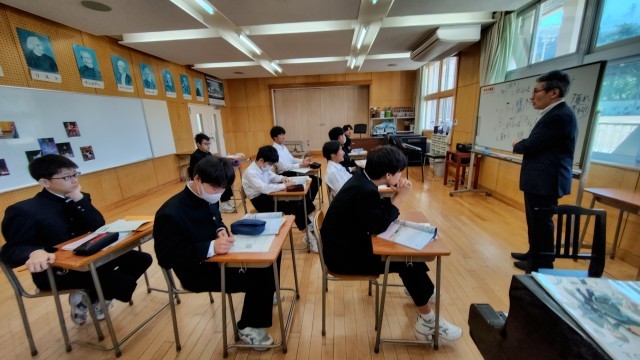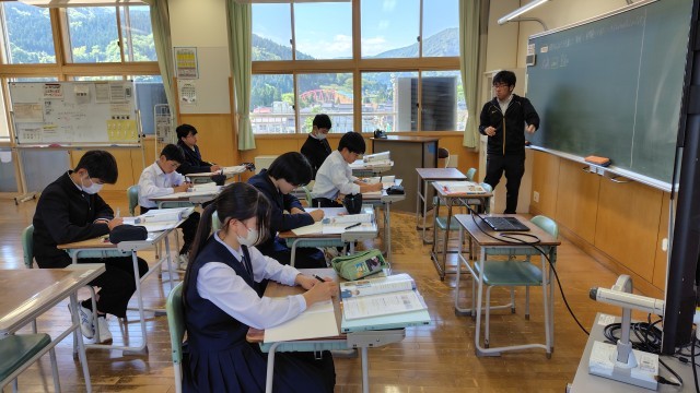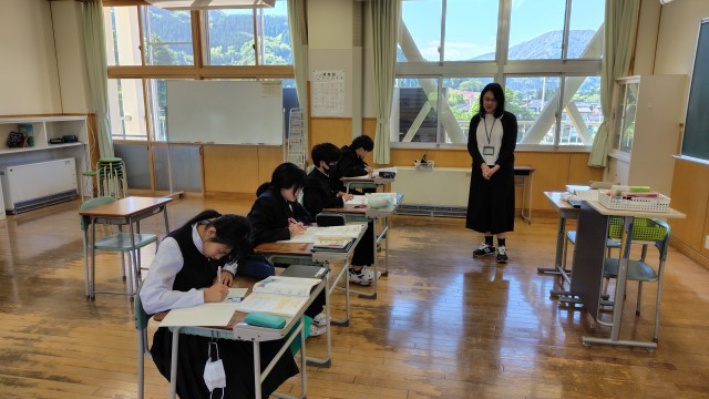 1年生は数学で正負の数、2年生は英語でスピーチを通して伝えたいことを表現する、3年生と碧空級は音楽で花を聞いて感想を書いて、記号を確認して、歌いました。最後に先生が次時にやるサンタルチアの歌を披露してくれました。素晴らしい歌声に生徒たちも聞き入っていました。