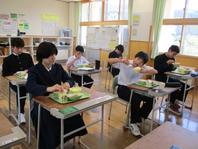 今日はホキの磯辺揚げ、あっさりとしたホキに磯の風味豊かな海苔が衣にはいっており、最高の塩加減で何個でもいけるおいしさでした。生徒たちもこれはおいしい!と絶賛の一品です。そこにしょうがひたしのしょうがが衣の油を中和してくれ、大和煮の甘さが今日の献立のおいしさをより引き立ててくれます。