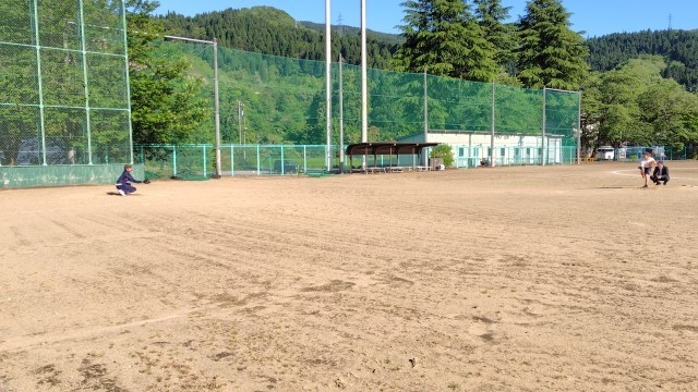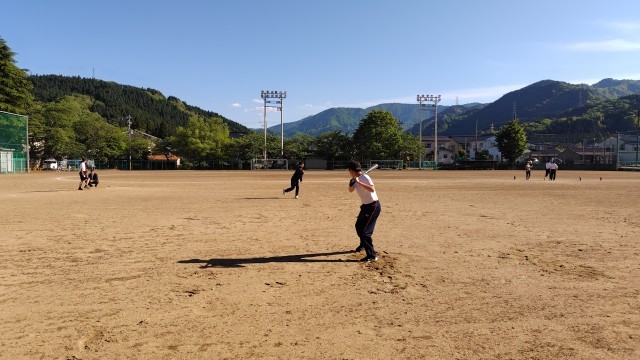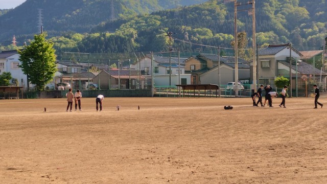 陸上競技部や野球部の様子です。陸上競技部はグラウンドを走ったり、筋トレ、野球部は素振りや狙ったコースに入れるためのピッチングをしていました。