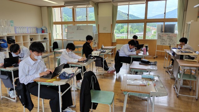 3年生は理科で試薬をリトマス紙やフェノールフタレイン液などを使って、どれがどれか見分けていました。社会では、できた資料をチェックし、よりよくするために再び作っていました。
