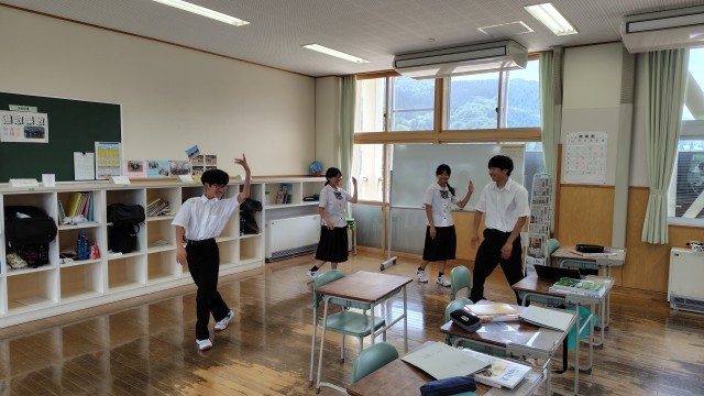 休み時間に教室に行くと1年生が明日の体育大会の応援の確認をしていました。お互いの団のダンスを見合っていました。よりよくなるようお互いに頑張りましょう!
