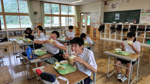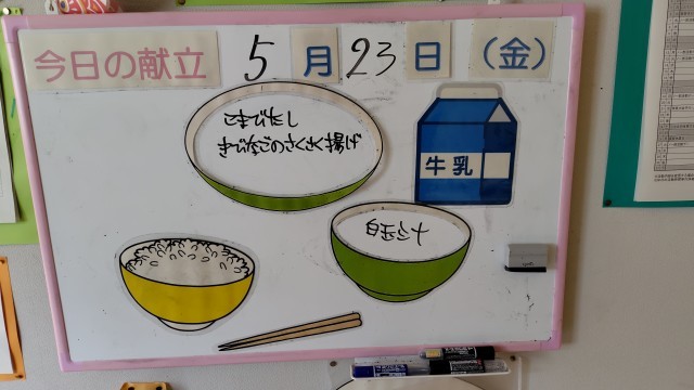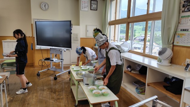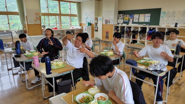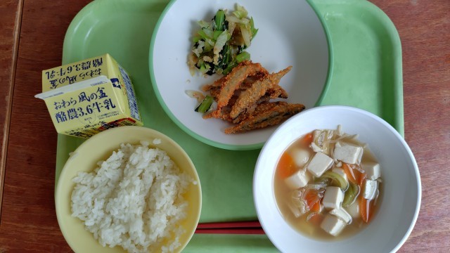 きびなごはサクサクカリカリ!白玉汁はモチモチの白玉、ごまひたしはごまの豊かな風味が、そしてご飯は大盛りにしていた生徒もいました!