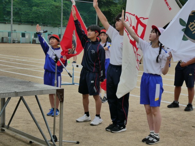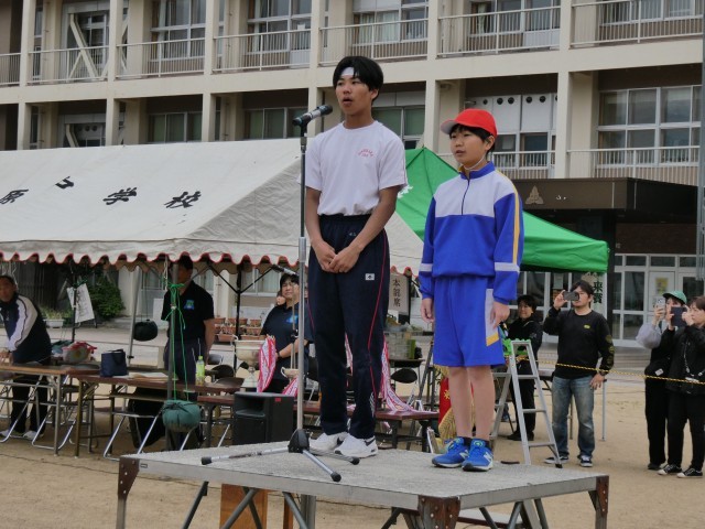 小中の実行委員の開会宣言ではじまり、団長たちが選手宣誓をしました。宣誓する姿はかっこいいですね!!(1、2枚目)