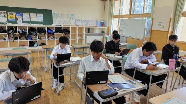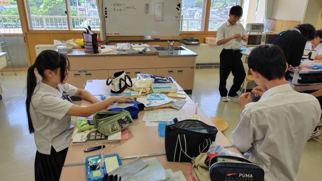 1年生は技術で、ネットワークの仕組み、2年生は、家庭で縫う練習や玉結び、シミの落とす練習、3年生はオープンハイスクールについての申し込みの説明がありました。碧空級は学活で体育大会の振り返りや読書をしていました。