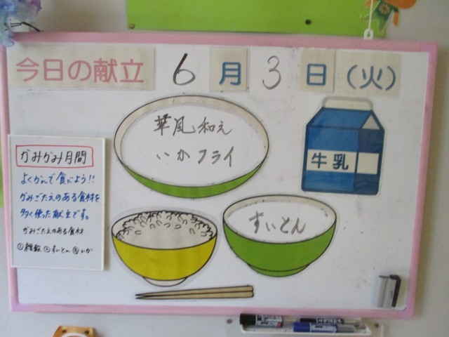 いかはさくさくな衣といかの味をいかしてくれる味付けで何個でも食べれそうです!すいとんのモチモチ感と味噌の濃厚な味、そこに華風和えのさっぱりさと雑穀米の噛めばかむほど素材の味を楽しめるメニューでした。いかだけにすべての素材をいかしたかみかみ献立でした!!