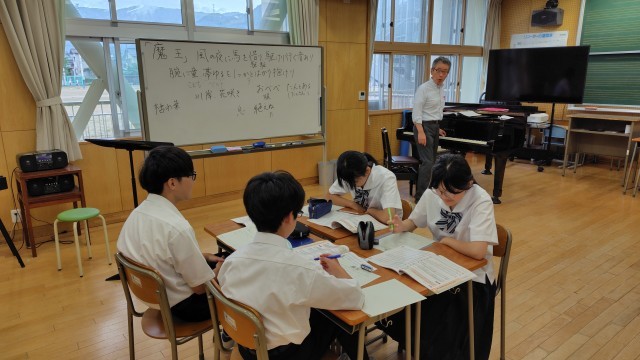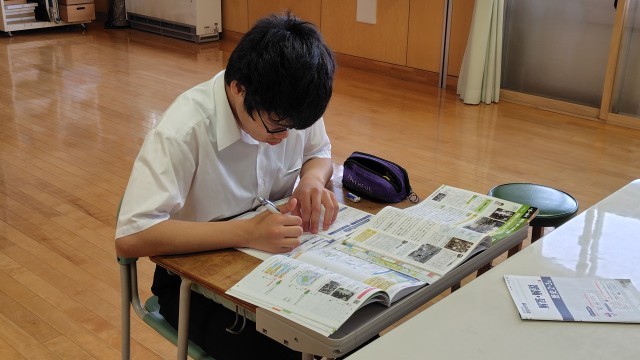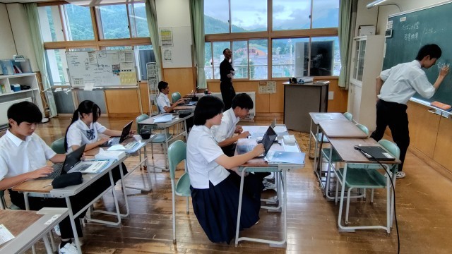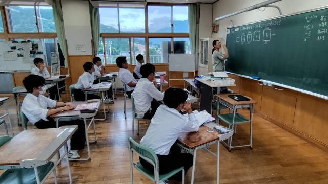 1年生は音楽で魔王の登場人物や背景について、曲を聴いて考えていました。2年生は保健体育でタバコの害について調べ学習をしていました。3年生は数学で正方形の面積と一辺の長さを求めよう。碧空級は社会で戦後の復興について問題にチャレンジしていました。