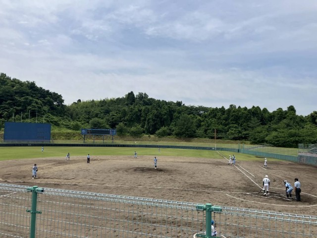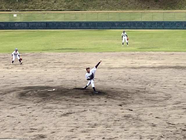 初回に先制し、そこからは本校投手が先発し、好守備に助けられながらも0点に抑えていました。6回裏に同点に追いつかれ、7回タイブレークとなり、7回表に2点とり、最後の7回裏の守備ではピシャリと抑え、3-1で本校投手は103球の力投で完投勝利となりました。