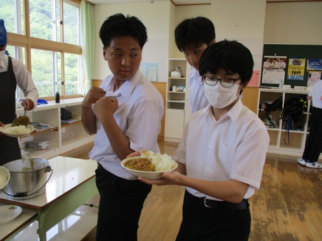 もりもりになっているカレーに生徒たちは大喜びでした!