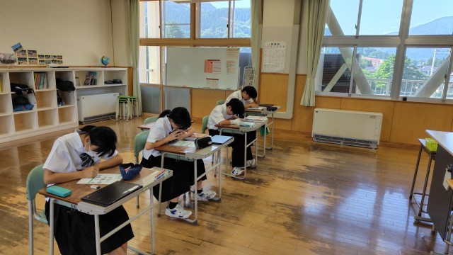 1、2年生は社会でテスト前に自分に必要なことを見つけて学習をしていました。