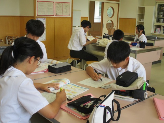 1、2年生は技術家庭科でテストの解説などをしていました。3年生は学活で明日のテストに向けてがんばっていました。碧空級は自立活動でした。