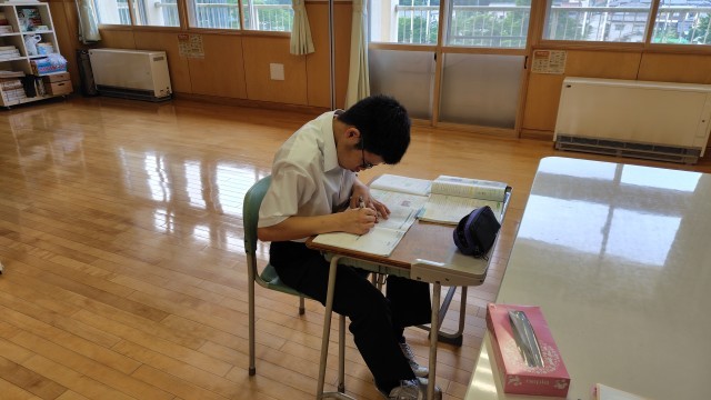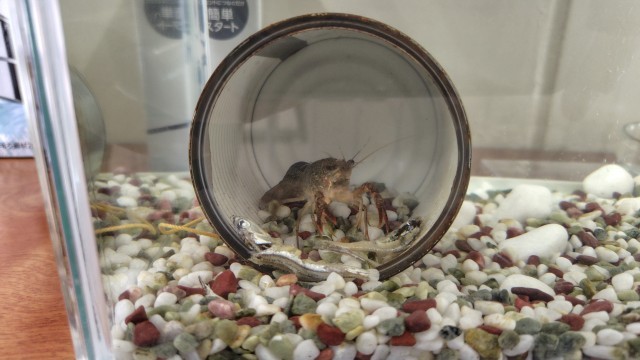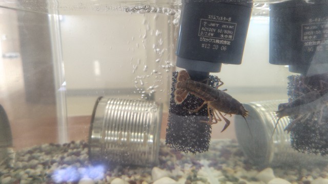 1年生は美術で感じの漢字、2年生は英語で目的や理由をつけて説明しよう、3年生は数学で解の公式をつかい2次方程式をとこう、碧空級は社会で効率と公正についてでした。ザリガニさんは空き缶のお家で食事や濾過機のスポンジでのんびり休んでいました。