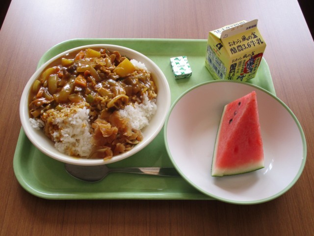 今日は年に1度の夏野菜カレーとスイカになります!!七夕の織姫と彦星のように年に1度しか巡り会えない待ち焦がれたメニューです。
