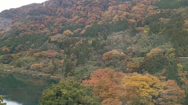 神通峡の紅葉、先週からみると赤や黄色が強くなってきました。