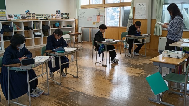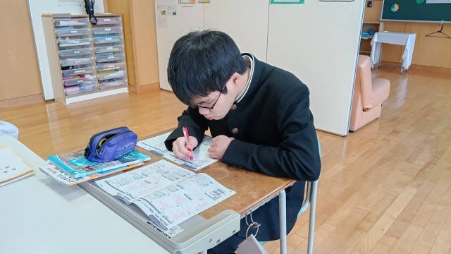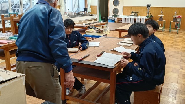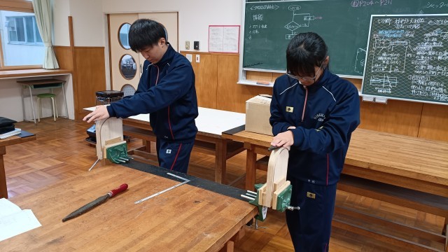 1年生は技術、シャッターボックス製作、側面のやすりがけをしてました。