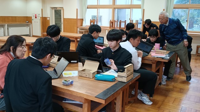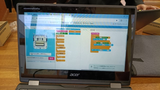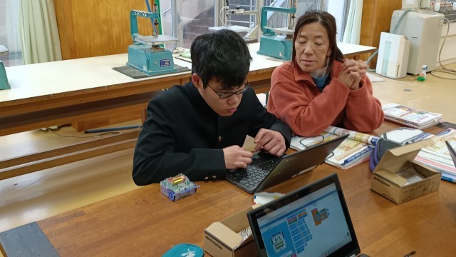 3年生は技術、プロボックスのプログラミングのセンサー反応のセットに苦労していました。