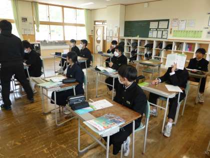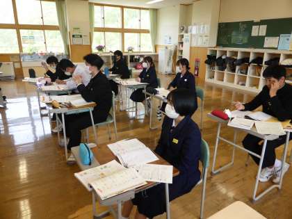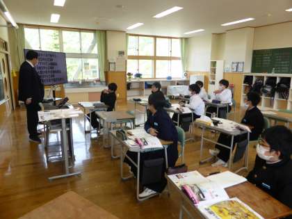 1年生は、社会で「地球と人類誕生」という内容の授業でした。