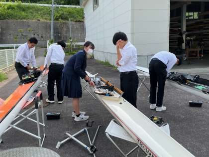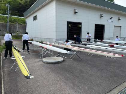 今日のボート部は大会に向けて、積み込み作業を行いました。