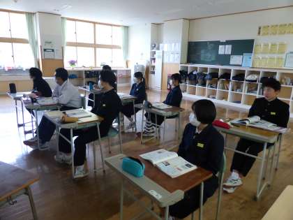 2年生は、英語でゴールデンウィークの宿題の説明を聞いていました。