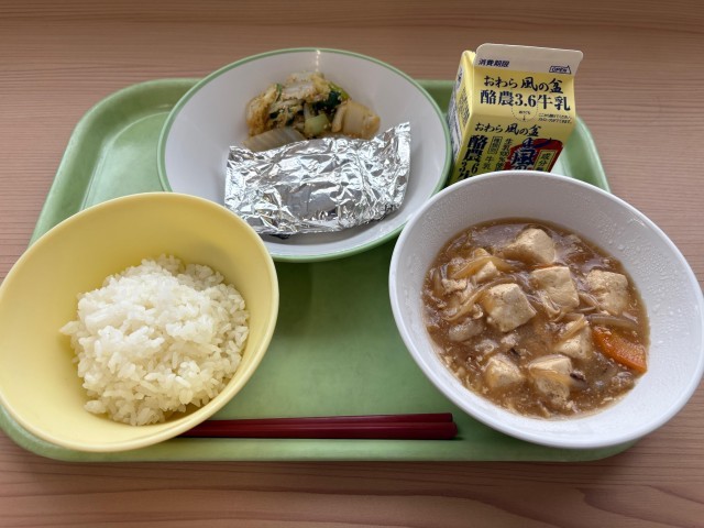 今日は、食材に「豆腐」が使われています。豆腐は、良質なタンパク質やカルシウムなど栄養成分が豊富に含まれている、栄養価の高い食品です。豆腐の原料は大豆(ダイズ)です。食欲が減退する夏場に、豆腐を食べることはとてもダイズ(大事)ですね。