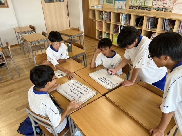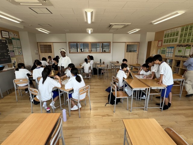 別の教室では英語の達人講座です。ALT2名をお招きして、アクティビティを行いました。クイズとストーリーメイキングを通して、英語に親しみました。