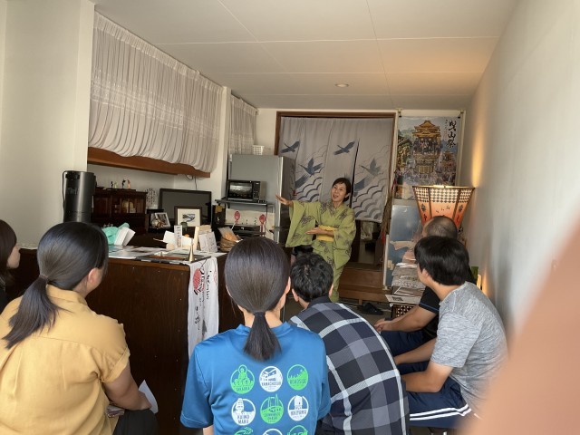 8月1日(金)地域巡り研修会(八尾探訪) 公開日 2025/08/01 更新日 2025/08/01 八尾中学校のページ 今年4月に着任された先生を中心に、八尾を知ってもらう目的で毎年この時期に地域めぐり(八尾探訪)を実施しています。今回は杉原神社、旧町の老舗酒造、最近話題のスイ−ツのお店、「日本の道百選」の諏訪町通りなどを巡りました。生徒が暮らす地域について理解を深めることができました。 +2