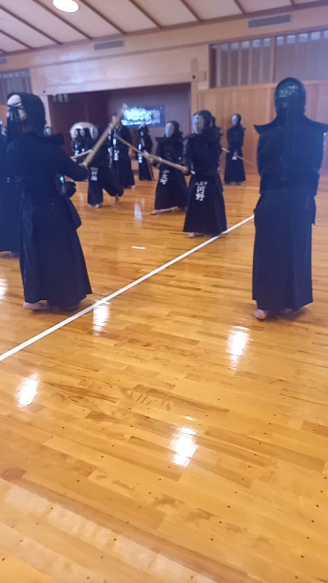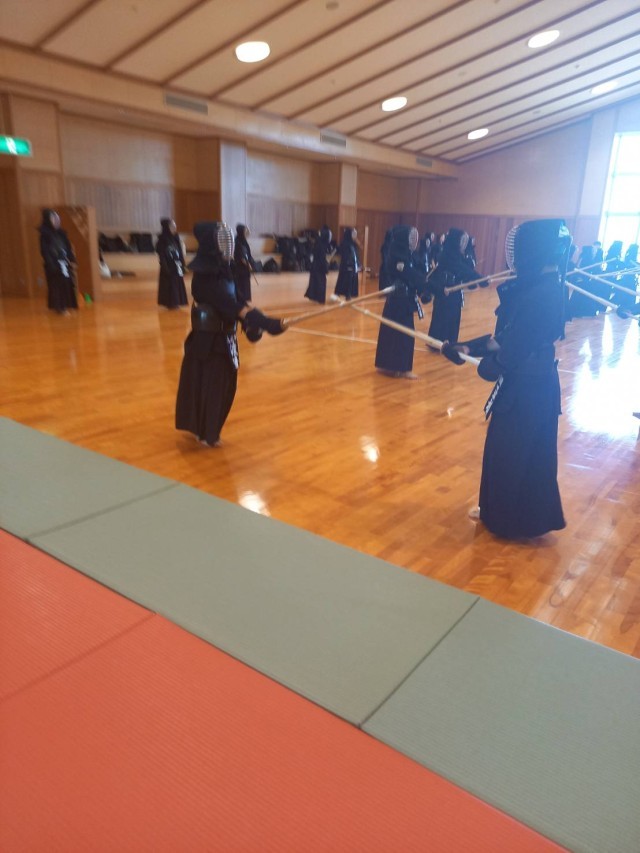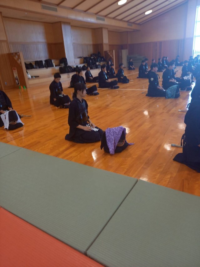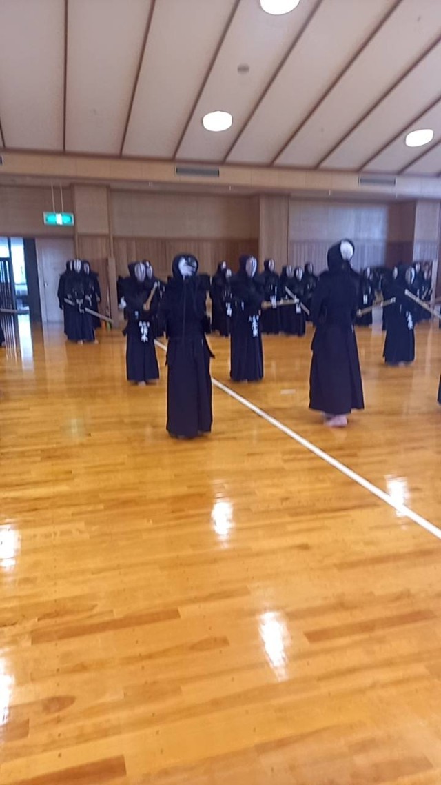剣道部は夏季講習会に参加中です。1年生は明後日の級審査に向けて頑張っています。