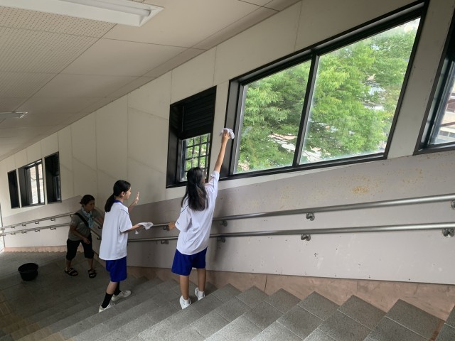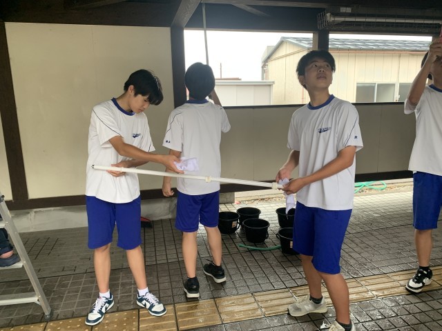 8月11日(月) 八尾駅高架橋清掃ボランティア活動その2 公開日 2025/08/12 更新日 2025/08/11 生徒会活動 高架橋清掃ボランティアに本校から7名参加しました。自分たちの手で自分たちの街を綺麗にすることは素敵なことです。9月にはおわら風の盆も控えています。気持ちよく八尾町に来てもらえるように心を込めて清掃しました。ボランティア活動に参加してくれたみなさん、ありがとうございました! +2